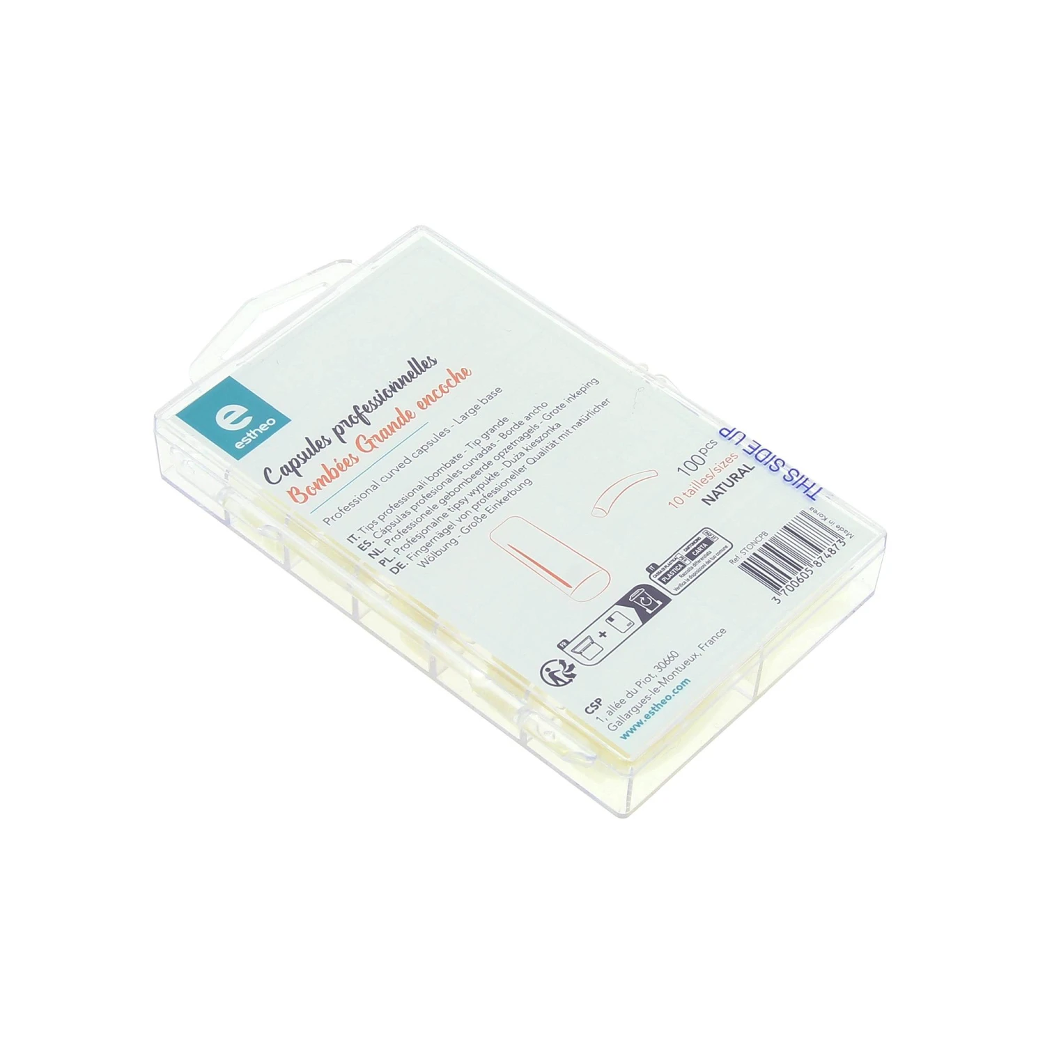 Les capsules professionnelles bombées de Estheo à grande encoche s’adapte à tous les types d’ongles : plats, bombés, normaux, etc.