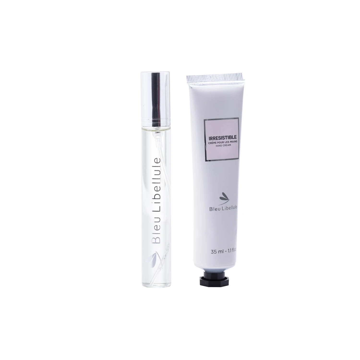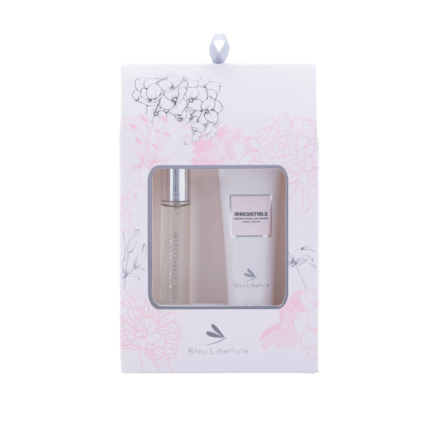 (Re)Découvrez les notes florales gourmandes du parfum Irrésistible Bleu Libellule dans ce petit coffret contenant un spray parfum 15ml et sa crème pour les mains 35ml.
