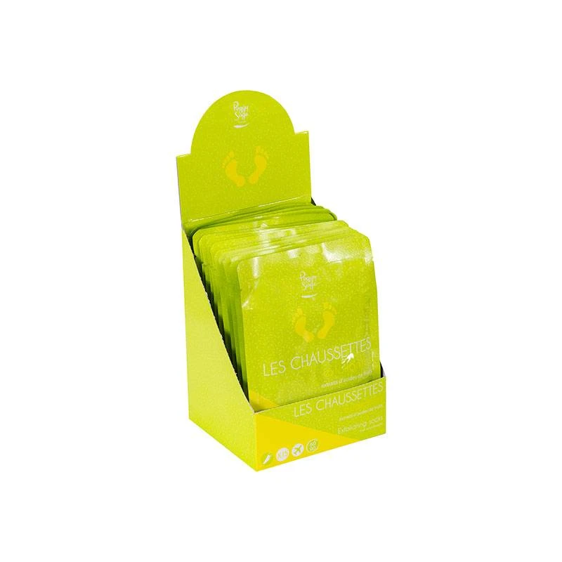 Le présentoir comporte 15 paires de chaussettes exfoliantes.